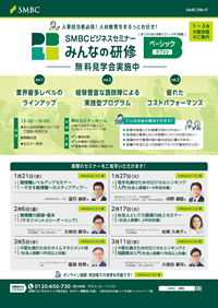 ガイドブック一覧 ・画像をクリックするとebookやパンフレットなど各種ドキュメントにアクセスいただけます ・ご利用のデバイスやブラウザによってはドキュメントの表示に時間が掛かる場合がございます みんなの研修 定額制クラブ(2025年度) 新入社員研修 ビジネスセミナー 定額制Webセミナー 社員研修(講師派遣) 総合サービスガイド 操作マニュアル みんなの研修 ※「定額制クラブ・ビジネスセミナー」は2026年3月23日から「みんなの研修」にリニューアルします。※CSV形式をご利用の方は、コチラから必要事項をご記入の上、ダウンロードください。 2026年度版 みんなの研修ガイドブック みんなの研修ガイドブックベーシック(サブスク)版 定額制クラブ(来場)※2025年度 2025年度版 定額制クラブガイド 東京版 定額制クラブガイド 大阪版 定額制クラブ セミナーお申込の手順 ベーシック(サブスク)無料説明・見学会のご案内 東京版 ベーシック(サブスク)無料説明・見学会のご案内 大阪版 新入社員研修 特設サイトにてお申込受付中です。 2026年度版 SMBCビジネスセミナー新入社員研修 東京版 SMBCビジネスセミナー新入社員研修 大阪・神戸版 SMBCビジネスセミナー新入社員研修 名古屋版 ビジネスセミナー 2025年度版 SMBCビジネスセミナー年間ガイド 東京版 SMBCビジネスセミナー年間ガイド 大阪版 オンラインセミナーライブ配信・アーカイブ配信 セミナー申込からご受講までの流れ 開催月別パンフレット 【東京版】 2月 3月 【大阪版】 2月 3月 定額制Webセミナー(アーカイブ) 定額制Webセミナーパンフレット 定額制Webセミナーご利用マニュアル 定額制Webセミナー動画ラインアップ&プログラム ※CSV形式をご利用の方は、こちらから必要事項をご記入の上、ダウンロードください 社員研修(講師派遣) 社内研修のご案内 総合サービスガイド 総合サービスガイド 操作マニュアル 利用者権限一覧表 「会員情報変更方法」操作マニュアル 「利用者登録」操作マニュアル